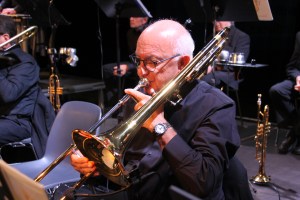 Wie is wie? Dirigent Eric Verhaeghe Eric Verhaeghe – dirigent/trompet (copyright Suzy Hendrikx) Trompetten Eric Verhaeghe – dirigent/trompet (copyright Suzy Hendrikx)John Sarrazyn – trompet (copyright Suzy Hendrikx)Rony D’Herck – trompet (copyright Suzy Hendrikx)Eric Laloo – trompet (copyright Suzy Hendrikx)Freddy Devos – trompet (copyright Suzy Hendrikx) Trombones Wilfried Cardinael – trombone (copyright Suzy Hendrikx)Marc Antheunis – trombone (copyright Suzy Hendrikx)Geert Bekaert – trombone (copyright Suzy Hendrikx)Hans Vanhauwaert – Trombone ( copyright by Suzy Hendrikx)Hans Vanhove – bastrombone/tuba Saxen Alexandra Martin ( Copyright by Suzy Hendrikx)Patrick Vercruysse – sax (copyright Suzy Hendrikx)Inge Stassen – fluit, sax (copyright Suzy Hendrikx)Georges Vanpachtenbeke – sax (copyright Suzy Hendrikx) Ritmesectie Marc Alleyn – pianoHans Pauwels – bas (copyright Suzy Hendrikx)Tony Gyselinck – drums (copyright Suzy Hendrikx)Emile Mosar ( copyright Suzy Hendrikx)Eric Taelemans – vibrafoon, percussie (copyright Suzy Hendrikx) Klik om te delen op Facebook (Opent in een nieuw venster) Facebook Vind-ik-leuk Aan het laden...